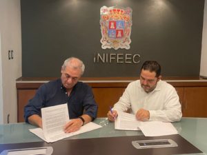 Para contribuir a las acciones que transformen la educación en la entidad, el Instituto de la Infraestructura Física Educativa del Estado de Campeche (INIFEEC) y el Colegio de Bachilleres de Campeche (COBACAM) firmaron el convenio de colaboración que contempla la construcción de un aula didáctica en el Centro de Educación Media Superior a Distancia 03 en la localidad de Isla Aguada del municipio de Carmen.
