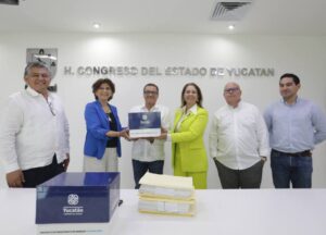 En cumplimiento con lo dispuesto en la Ley, las titulares de las Secretarías General de Gobierno (SGG), María Fritz Sierra; de Administración y Finanzas (SAF), Olga Rosas Moya; el Consejero Jurídico del Estado, Yussif Heredia Fritz, así como el director general de la Agencia de Administración Fiscal de Yucatán (AAFY), Juan Carlos Rosel Flores, entregaron el proyecto de paquete fiscal del próximo año al presidente de la Junta de Gobierno y Coordinación Política, Víctor Hugo Lozano Poveda, y al presidente de la Comisión de Presupuesto, Patrimonio Estatal y Municipal del Congreso local, Jesús Pérez Ballote, para su análisis, discusión y, en su caso, aprobación por los diputados integrantes de la 63 legislatura.