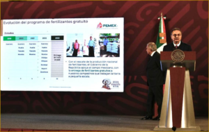Octavio Romero mencionó que Petróleos Mexicanos ha producido en promedio el 61.2% del fertilizante del programa de apoyo a pequeños agricultores del Gobierno de México entregado entre mayo de 2019 y diciembre de 2022. Asimismo, afirmó que para 2023, con la capacidad de producción de ambos complejos de fertilizantes, se podrá cumplir con el 70% del objetivo planteado en esta iniciativa, mientras que para 2024, PEMEX producirá el 84.2% del fertilizante y al cierre de ese año se cubrirá el 100%.