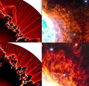 El astrónomo aseguró que, para profundizar en la física de esta nebulosa, se han usado simulaciones hidrodinámicas hechas en el IA-UNAM Ensenada con el código ZEUS-3D para estudiar la formación de las estructuras radiales y los grumos que se observan en hidrógeno molecular.
