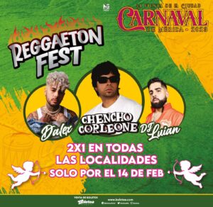 Para todos aquellos que les gusta el reggaetón y no se queden sin disfrutar de este festival que encabeza Chencho Corleone junto con DJ Luian y Dalex, estará a partir de hoy y hasta el 14 de febrero la promoción en boletaje al 2×1 en todas las localidades.