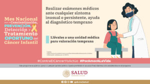 Dio a conocer que el INP y el Censia realizan de forma conjunta campañas periódicas de sensibilización, sobre todo en preescolar y primaria, para que docentes, madres y padres de familia conozcan los signos o síntomas que pueden representar un foco rojo de cáncer.