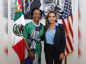 La gobernadora Mara Lezama agradeció a la cónsul general de los Estados Unidos en Mérida Dorothy Nguttter su colaboración permanente para fortalecer la relación bilateral, de labor conjunta y de amigas. “Tenemos una mujer que ama a su país y trabajamos de manera estrecha”.