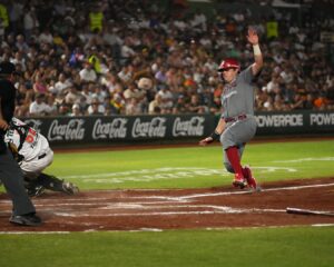 El conjunto escarlata hizo tres carreras en la parte alta de la segunda entrada, gracias a dos dobles uno de Ramón Flores donde timbraron Japhet Amador y Roberto Ramos, y otro extra base por el novato Ángel Arredondo en los spikes del mismo Flores, para dejar el score 3-0.