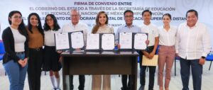 Para abrir nuevas oportunidades de educación superior a cientos de jóvenes en comunidades rurales que están a punto de desertar de su formación por falta de alternativas, la gobernadora Mara Lezama Espinosa encabezó la firma de un convenio para establecer el Programa Estatal de Educación Superior a Distancia.
