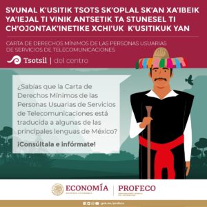 La Procuraduría Federal del Consumidor (Profeco), con el apoyo del Instituto Nacional de Lenguas Indígenas (INALI), lanza la traducción de la Carta de los Derechos Mínimos de los Usuarios de Servicios de Telecomunicaciones, en cinco lenguas indígenas nacionales.