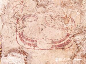 La Secretaría de Cultura del Gobierno de México, a través del Instituto Nacional de Antropología e Historia (INAH), registró una pintura mural inédita en un bloque de piedra usado por los antiguos mayas como tapa de bóveda, en una de las estructuras de la Acrópolis de Ek’ Balam. Con esta suman siete tapas de bóveda pintadas recuperadas en el último año en dicha zona arqueológica de Yucatán.