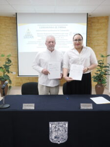 La firma del documento protocolario, que tuvo lugar en la sala principal de la Coordinación General de Vinculación y Extensión Académica, estuvo a cargo del rector Dr. José Alberto Abud Flores y la Lic. Reyna Estela Reyes Melo, como apoderada legal de la REDMYH.