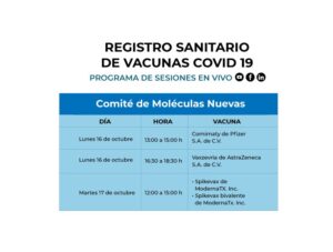 Se da a conocer la programación de las sesiones de evaluación de estos biológicos en el Comité de Moléculas Nuevas (CMN), como parte del proceso de transición de la Autorización de Uso de Emergencia hacia el Registro Sanitario. Estas sesiones estarán centradas principalmente en la evaluación del desempeño clínico de las vacunas y serán públicas a través de las redes sociales de esta autoridad sanitaria.