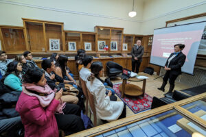 Acompañados por Rodolfo Zanella Specia, director del Centro de Estudios Mexicanos UNAM-Francia, las y los alumnos de la UNAM convivieron con la embajadora de México en Francia, Blanca Jiménez Cisneros, en cuya reunión abordaron temas como el papel de esa representación en la promoción en las relaciones diplomáticas, comercio, política y educación entre ambas naciones, además de compartir consejos prácticos para su estadía en la capital francesa.