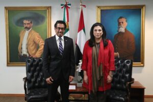 La presidenta de la Mesa Directiva de la Cámara de Diputados, Marcela Guerra Castillo, recibió al embajador de los Emiratos Árabes Unidos en México, Ahmed Hatem Barghash Almenhali, en donde señaló la importancia de avanzar en el intercambio de tecnologías para la generación de energía solar y atender el problema del desabasto de agua, aunado a fortalecer los acuerdos en materia cultural y el turismo.