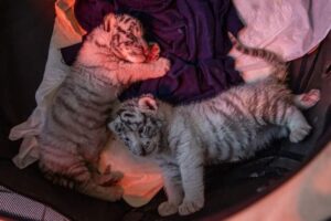 Con las dos crías de tigre blanco la colección faunística de “Zacango” crece a siete ejemplares. Sus padres son Toulouse y Duquesa, de tres y dos años de edad, respectivamente.