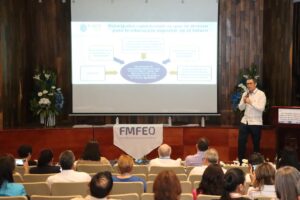 Al impartir la plática “Reinventar la educación superior y transformación de las universidades”, en el marco de la XLV Asamblea General Ordinaria de la Federación Mexicana de Facultades y Escuelas de Odontología (FMFEO), el rector indicó que, como parte de una institución académica, se debe pensar en nuevas formas de enseñanza para darle la oportunidad de estudiar a una mayor cantidad de personas.