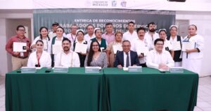 El Instituto Mexicano del Seguro Social (IMSS) en Campeche entrega fistoles de oro y plata a personal médico y administrativo, que cumple 25, 30 y 35 años laborados, contribuyendo con vocación y dedicación al fortalecimiento del servicio médico en la entidad.