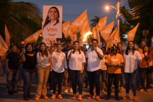 Acompañada por Nayelli Crespo y Mariana Zepeda, candidatas a senadoras, y Fátima Chay Che, candidata a diputada federal por el distrito 5, Vida Gómez tocó las puertas de las casas para escuchar a las familias y llevar su propuesta de un cambio que dará a Yucatán un mejor futuro.