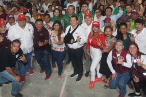 Acompañado de su esposa, la profesora Wendy Méndez Naal; la candidata al Senado Verónica Camino Farjat; el candidato a diputado federal por el distrito 2, Jorge Sánchez; el presidente del PT, Francisco Rosas Villavicencio; y representantes del partido Verde, Huacho llamó a la ciudadanía a votar este próximo 2 de junio por las y los candidatos de Morena, PT y Partido Verde.