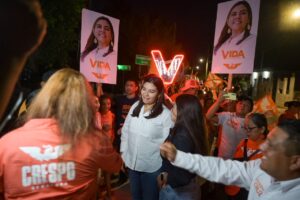 Con mucha energía y entusiasmo, Vida Gómez Herrera, candidata a gobernadora de Movimiento Ciudadano encabezó una caminata por la Villa de Baca para saludar a las familias en sus casas y compartir con ellas el nuevo panorama que se construye con la ciudadanía.