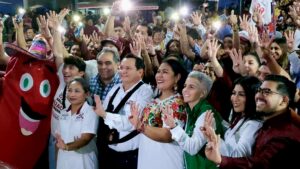 La también Ingeniera, acompañada de cientos de acanquenses y del candidato al Gobierno del Estado de Yucatán, por la coalición Sigamos Haciendo Historia, Joaquín “Huacho” Díaz Mena, presentó su agenda de trabajo que contempla acciones a favor de todos los sectores, en especial de grupos vulnerables y servicios esenciales.