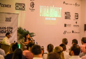 La candidata de Movimiento Ciudadano a la gubernatura del Estado, Vida Gómez Herrera se reunió con los empresarios de la Coparmex, Mérida, que preside Emilio Blanco del Villar, en un foro, donde presentó de manera ágil y dinámica la agenda en materia económica que se concretará para elevar la calidad de vida de las y los yucatecos.