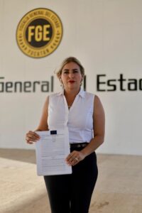 La candidata a diputada federal Jessica Saidén se encargó de acudir a la Fiscalía para realizar el procedimiento formal.