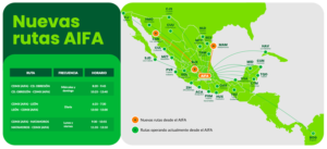 En este año comenzó a operar 12 nuevos vuelos desde el AIFA, ofreciendo ya 29 destinos en total.