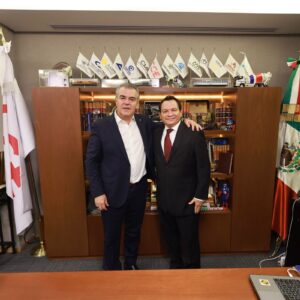 Como parte de su agenda de trabajo durante su visita a la Ciudad de México, el Gobernador Electo, Joaquín Díaz Mena se reunió con Francisco Alberto Cervantes Díaz, Presidente del Consejo Coordinador Empresarial, con quien habló de las bondades del plan Renacimiento Maya, así como diversos temas de interés para el sector empresarial.