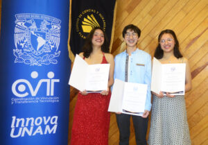 Mariana y Gabriela Fernández Mejía, además de Krista Juliette Ley Moreno, con la asesoría de Justino Fernando Silva Zárate, obtuvieron el primer lugar en la modalidad “Diseño Innovador” del XXXII Concurso Universitario Feria de las Ciencias, la Tecnología y la Innovación de la UNAM.