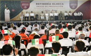 El director general de Petróleos Mexicanos (PEMEX), Octavio Romero Oropeza, en presencia del presidente de México, Andrés Manuel López Obrador, y la presidenta electa, Claudia Sheinbaum Pardo, dio a conocer los detalles del inicio de la producción de combustibles líquidos en la refinería Olmeca, ubicada en el puerto de Dos Bocas, municipio de Paraíso, Tabasco. Además, resaltó los logros alcanzados en cuanto a la recuperación de la producción de hidrocarburos y el rescate al Sistema Nacional de Refinación (SNR).