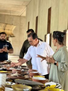 Por la tarde disfrutó de una experiencia gastronómica en el comedor comunitario Las Flores de Sac Chich, organizado y operado por cocineras tradicionales de la localidad, quienes prepararon choch de Acanceh, sopa de milpa, cochinita pibil y helado de nance, mostrando en cada platillo sus conocimientos y talento.