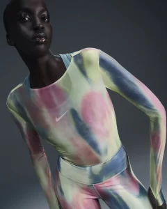 Deller-Yee centró diseños florales en cada pieza de la colección, utilizó un efecto de acuarela para crear una mezcla de colores y texturas audaz pero sutil que promueve el diálogo activo entre el cuerpo, la feminidad, el movimiento y la fuerza. Ese tema abarca de forma orgánica toda la cápsula que tiene una chamarra bomber, tres playeras, chanclas y una bolsa tipo tote además del bra Alate, los leggings Nike One y el conjunto Phoenix Fleece.