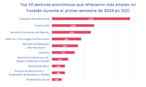 De manera adicional, OCC dio a conocer la lista de las 10 empresas que publicaron más oferta laboral a través de occ.com.mx en el estado durante el primer semestre: Celulares y Accesorios del Sureste, Desarrollos de Vivienda Sustentable, Baldesigns de México, Fundación Rafael Donde, Palace Resort, Estación de Servicios Circuito Colonias, Diario de Yucatán, Productos Palermo, Leoni Wiring Systmens mexicana y Administradora Triton Operativa.