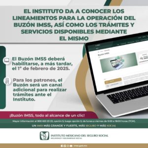 El Instituto Mexicano del Seguro Social (IMSS) en Campeche informa a la población patronal que el Buzón IMSS debe ser habilitado antes del próximo 1 de febrero de 2025, para convertirse en un canal adicional para realizar trámites diversos ante esta institución.