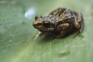 En una noche de julio de 2023, en el panteón de Xilotepec, en Xochimilco, se ve a cuatro biólogos de la UNAM que, con las lámparas de su celular, buscan entre la maleza y tumbas al responsable de producir un silbido que, de tan potente y nítido, parecería de humano. La tarea les lleva un par de horas, pero al final dan con el animal: una diminuta rana verde que, con sus dos centímetros de largo, bien cabría en la uña del pulgar.