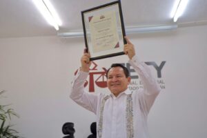 Esta tarde Joaquín Díaz Mena recibió en el Tribunal Electoral del Estado de Yucatán (TEEY) la Constancia que lo acredita como Gobernador Electo, tras aprobarse en sesión pública del Pleno el dictamen relativo al cómputo final y la declaración de validez de la elección.