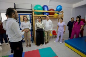 El Gobernador Joaquín Díaz Mena, acompañado de su esposa, la maestra Wendy Méndez Naal, realizó una visita al Centro de Rehabilitación y Educación Especial (CREE), que atiende a alrededor de 6,300 personas con discapacidad al año, brindándoles terapias de rehabilitación física, ocupacional y de lenguaje.