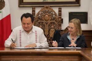 Más tarde, el Gobernador sostuvo una reunión con la Embajadora de Francia en México, Delphine Borione para efectuar la firma de la carta de intención entre el Gobierno estatal y la Alianza Industria del Futuro del país galo, con la que se refuerzan los lazos de amistad y cooperación para alcanzar los Objetivos de Desarrollo Sostenible de la Agenda 2030 de la ONU, motivado por el interés mutuo de lograr con éxito los objetivos de Yucatán establecidos en el plan “Renacimiento Maya”, de manera especial en los sectores de Innovación y Desarrollo Tecnológico, Energético, Aeronáutico y Espacial, Químico Farmacéutico e Industrias Creativas Digitales.