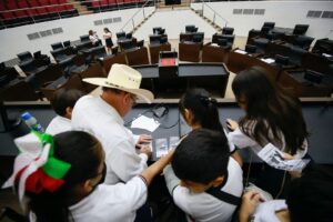 El Diputado Monforte Marfil explicó a las y los niños que, desde esta Legislatura, el Recinto ha sido de puertas abiertas para recibir a todas y todos los yucatecos y con ello escuchar sus peticiones y necesidades para que sean atendidas y encaminadas a una transformación que beneficiará a la población.