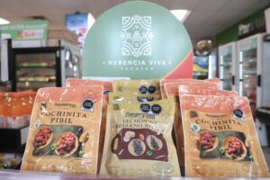 Junto a Adrián Montiel Vivial, gerente Plaza Mérida de Oxxo, supervisó el Exhibidor “Herencia Viva” que se encuentra dentro de la tienda Francisco de Montejo (el primero que se estableció en el estado), donde arrancó este proyecto que, a través de 26 sucursales en la entidad, pretende posicionar los productos seleccionados a través de la plataforma comercial.