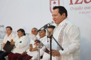 En su mensaje, Díaz Mena destacó que la llegada de la primera presidenta municipal de Izamal marca el inicio de la Cuarta Transformación en este Pueblo Mágico lleno de historia y tradición. Señaló que este proceso incluirá bienestar y progreso para todas las personas que lo habitan.