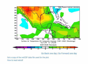La experta del Departamento de Ciencias Atmosféricas recordó en entrevista que el invierno se presenta del 21 de diciembre a marzo próximo, y comparando los datos de 1991 a 2020 es posible ver que las temperaturas han ido aumentando; además, un pronóstico elaborado por la Oficina Nacional de Administración Oceánica y Atmosférica (NOAA), de Estados Unidos, indica que en 2025 se debe esperar un clima seco y cálido.