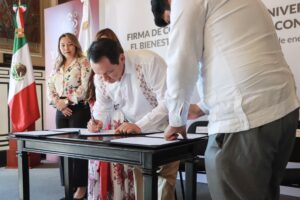 “La Pensión para el Bienestar de las Personas con Discapacidad Permanente es una declaración de principios que representa la convicción de que nadie debe quedar atrás ni ser excluido de las oportunidades de desarrollo. En colaboración con la Secretaría de Bienestar, hemos logrado materializar un derecho consagrado en nuestra Constitución: el acceso universal a esta pensión”, enfatizó el Gobernador, en presencia de su esposa y testigo de honor de esta firma, la Presidenta Honoraria del Sistema para el Desarrollo Integral de la Familia (DIF) de Yucatán, la maestra Wendy Méndez Naal.