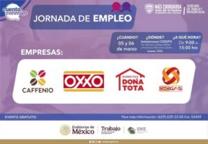 OXXO, como parte de su compromiso con la inclusión y el desarrollo social, se une al Servicio Estatal del Empleo para apoyar la jornada de reclutamiento que se llevará a cabo los días 5 y 6 de marzo el Centro de Atención Integral al Migrante en Juárez. Este evento ofrece oportunidades laborales para personas en situación de movilidad o que sean repatriados. Asimismo, participarán otras empresas de la división FEMSA Proximidad y Salud como Caffenio, OXXO Gas y Doña Tota.