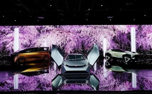 El stand de Nissan en el Japan Mobility Show 2023 fue diseñado para permitir a los visitantes experimentar de manera interactiva la sociedad de movilidad del futuro. Una pantalla gigante, un piso negro y pilares de luz fueron elementos clave. Los autos conceptuales y el contenido digital fueron integrados de manera fluida para expresar la fusión del presente y el futuro. Los visitantes fueron invitados a un nuevo mundo que combinaba lo físico y lo virtual, la naturaleza y la tecnología.