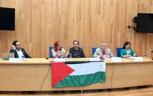 Ante Jaime Alberto Isla Lope, Erika Aguilar Silva, ambos académicos del CRI, expuso que Palestina “ha venido cosechando un respaldo popular sin precedentes, frente a imaginarios de pacificación, el desgaste de lo político y lo legal, y ha sido piedra angular de las transformaciones y de los reacomodos geopolíticos”.