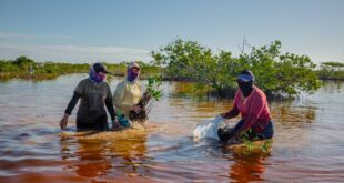 Calkiní, Campeche, 22 de diciembre de 2023.- Intensa gira de trabajo de la Gobernadora por la zona costera norte del Estado. En total 80 mujeres y 20 hombres de Tankuché e Isla Arena restauran 200 hectáreas de manglar y reforestan otras 60 con inversión de 2.4 millones de pesos. En …
